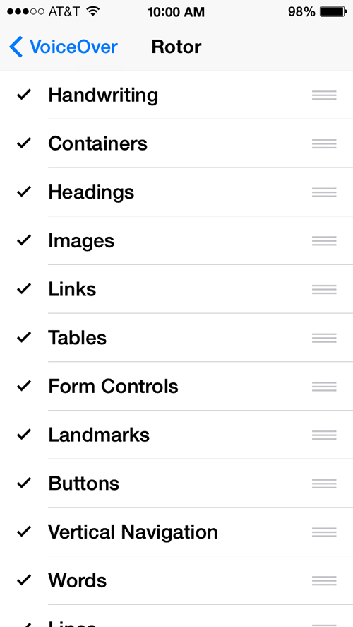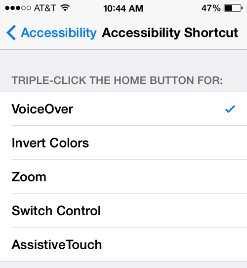 Apple recommends that developers setting the Triple-Click Home Accessibility Shortcut to VoiceOver so you can quickly do accessibility testing of your sites and apps by pressing the home button 3 times to turn VO on and off easily.