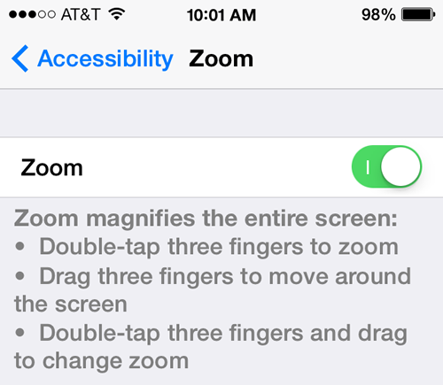 Magnify & pan: Triple-tap & hold, then drag your finger.