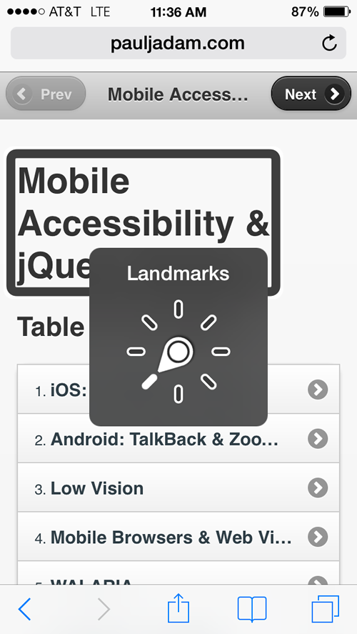 Explore the world of accessibility on mobile devices -- including iOS, Android, and Windows mobile -- and how jQuery fits into the mobile accessibility landscape.